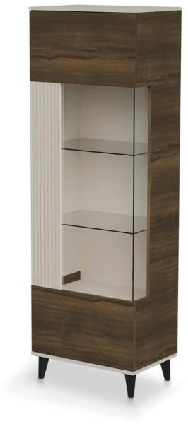 vitrin, méretek: 60/40/182 cm, anyag: laminált MDF / laminált forgácslap / polipropilén, szín: kasmír / dió / fekete - Mindigbútor