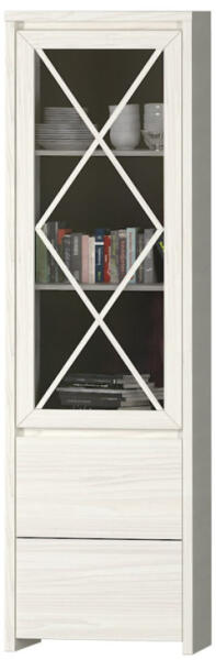 ajtós vitrinek - Nappali Qubix Az 1 ajtós vitrinek - Nappali Qubix a Nappali Qubix bútorkollekció része, 16 mm vastagságú melamin bevonatú forgácslapból készült, fehér (White Douglas) felülettel. A vitrinek a következőképpen vannak felosztva: a felső részben 3 polc található, üvegajtóval fedve , amelyek ideális helyet biztosítanak a díszítőelemek bemutatásához. Az alsó részben két polc található, amelyeket az ajtó teljes eleje fed , így zárt teret biztosítva edények, könyvek vagy egyéb, rejtve tartandó tárgyak tárolására. Ez a vitrinek sokoldalú tárolási lehetőségeket kínálnak, lehetővé téve a nappaliban található különféle tárgyak rendezett és esztétikus elrendezését. A szekrény részletes rekeszfelosztását az egyes elemek méreteivel együtt az alábbi összeszerelési vázlaton tekintheti meg. A széle 0,6 mm vastag . Könnyen összeszerelhető, a termékhez tartozik egy összeszerelési ábra és a szükséges szerszámok a csomagban. Külső méretek: