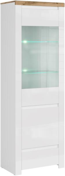 TEMPO KONDELA Vitrin 1D1W1S, fényes fehér/wotan tölgy, VILGO - mindigbutor