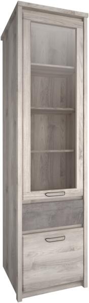 Szobák > Nappali szoba bútor > Vitrin - Anyag: laminált DTDSzín: nairobi gesztenye/onixMéretek (SzxMéxMa): 56x40x210 cmAnyag vastagsága: 1,6-3,2 cmFém fogantyúkFogantyúk színe: feketeVitrin Üveggel PolcosKétajtósEgy fiók Fiók teherbírása: 5 kgMűanyag lábakModern dizájnSzétszerelve szállítva