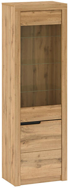 TORONTA A2 Jobbos Vitrin - Wotan Tölgy: Elegáns tárolás otthonodban ? A TORONTA A2 jobbos vitrin wotan tölgy színben tökéletes választás nappaliba vagy étkezőbe. Stílusos megjelenésével és praktikus tárolóhelyeivel otthonod dísze lesz. Főbb jellemzők:Anyag: DTD laminált/MDF fóliázott Szín: Wotan tölgy Méret: 63 x 39,7 x 197,2 cm Korpusz vastagsága: 16 mm Ajtó vastagsága: 19 mm Elrendezés: Két szekrény üveges polcokkal Jobbos kivitelMiért válaszd a TORONTA A2 vitrint?Elegáns design: A wotan tölgy szín modern és természetes megjelenést kölcsönöz a bútornak. Praktikus tárolás: Az üveges polcokon stílusosan helyezheted el kedvenc dekorációidat, könyveidet vagy emléktárgyaidat. Minőségi anyagok: A DTD laminált és MDF fóliázott anyagok tartósak és könnyen tisztíthatóak. Jobbos kivitel: A jobbos elrendezés lehetővé teszi, hogy a vitrint a szobád adottságaihoz igazítsd. Méretek:Méret Érték (cm)Szélesség 63Mélység 39,7Magasság 197,2Összeszerelés: A vitrint lapraszerelt állapotban szállítjuk.