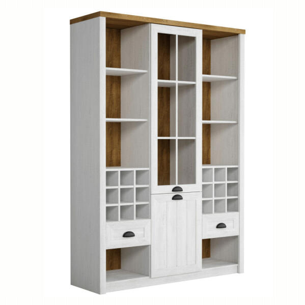 PROVANCE Vitrin W2D2S - Elegáns tárolás a provence-i stílusban ? A PROVANCE vitrin tökéletes választás, ha otthonodba egy kis vidéki hangulatot szeretnél csempészni. A sosna andersen és tölgyfa lefkas színkombinációja melegséget és természetességet sugároz, miközben praktikus tárolási megoldásokat kínál. Főbb jellemzők:Anyag: Laminált DTD (faforgácslemez) a tartósságért Szín: Sosna andersen / Tölgyfa lefkas - a természetes hatásért Méretek (SzxVxH): 140 x 43 x 198 cm - tágas tárolóhely Korpusz vastagsága: 15 mm - stabil szerkezet Felső lemez vastagsága: 36 mm - masszív megjelenés Tárolási lehetőségek: Nyitott tárolóhelyek a dekorációk és könyvek számára Polcok a rendezett elhelyezéshez Fiókok a kisebb tárgyak tárolására Kisszekrények a zárt tároláshoz További információk: Szétszerelve szállítjuk - könnyű összeszerelés Provence-i stílus - elegáns megjelenés Ez a vitrin nem csak egy bútordarab, hanem otthonod dísze is! ✨