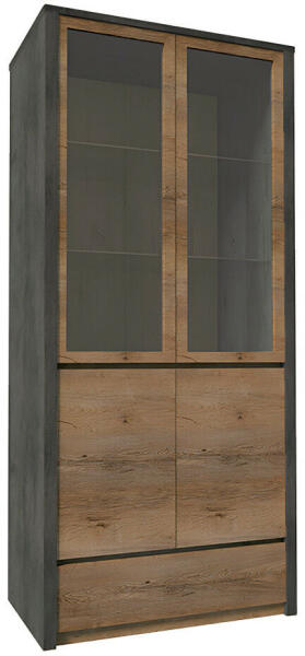 Tempo Vitrines szekrény, tölgy lefkas sötét/smooth szürke, MONTANA W2D