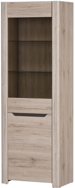 DESJO 01 vitrin univerzális B/JA DESJO termékcsalád univerzális vitrine, san remo/barna színben. Led világítás opcionálisan rendelhető hozzá. Méretek: szélesség: 67 cm, mélység: 42 cm, magasság: 192 cm.
